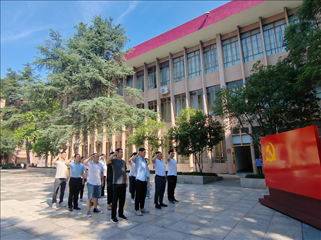 參觀結(jié)束后,全體黨員在黨旗下莊嚴(yán)舉起右拳,重溫入黨誓詞。“我志愿加入中國(guó)共產(chǎn)黨……”響亮的宣誓聲表達(dá)著共產(chǎn)黨員的堅(jiān)定信念。