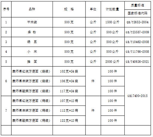 一、項(xiàng)目名稱:成品糧食、方便食品供應(yīng)采購(gòu)