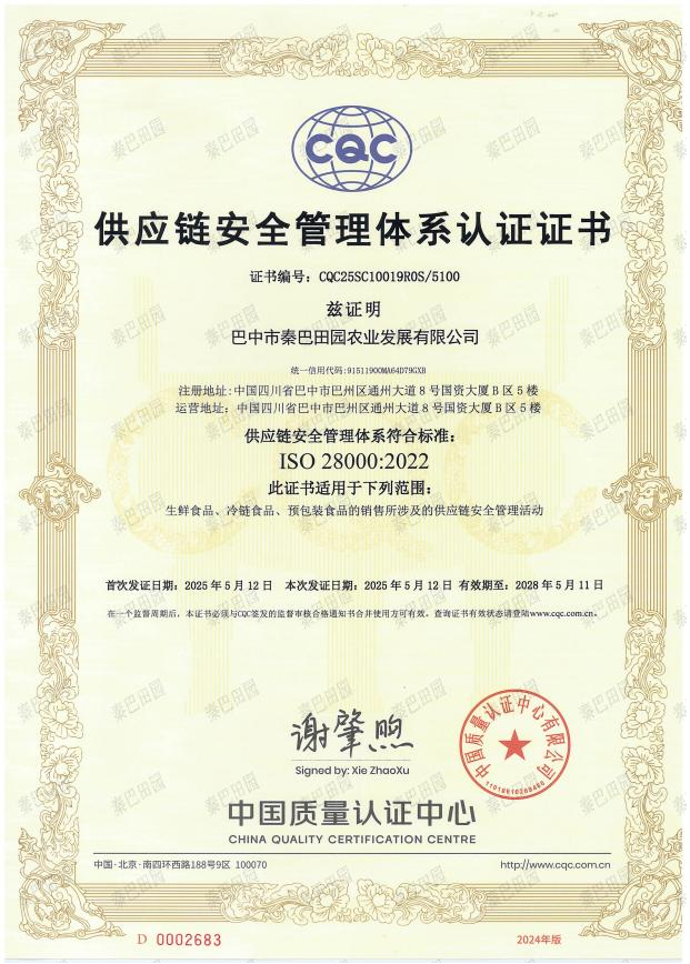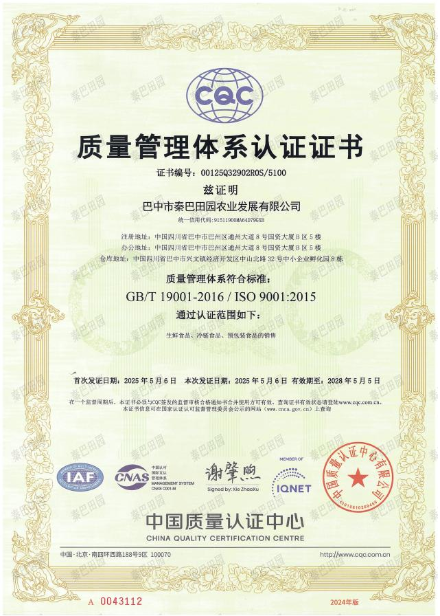 近日,巴中市秦巴田園農(nóng)業(yè)發(fā)展有限公司成功通過質(zhì)量管理(ISO 9001)、環(huán)境管理(ISO 14001)、職業(yè)健康安全(ISO 45001)、食品安全(ISO 22000)及供應(yīng)鏈安全(ISO 28000)五大國際管理體系認(rèn)證。此次認(rèn)證既是對(duì)秦巴田園公司標(biāo)準(zhǔn)化運(yùn)營體系的權(quán)威認(rèn)可,也體現(xiàn)了秦巴田園公司依托國際化標(biāo)準(zhǔn)持續(xù)提升綜合服務(wù)品質(zhì),全力構(gòu)建安全、綠色、健康的現(xiàn)代化服務(wù)體系的堅(jiān)定決心。