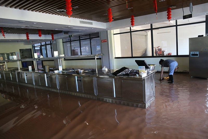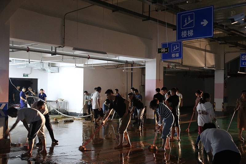在公司上下團(tuán)結(jié)一心,眾志成城,齊心協(xié)力的努力下,清理淤泥約700余方,29日凌晨2時(shí)受災(zāi)嚴(yán)重的地下車庫(kù)、食堂排水清淤工作基本結(jié)束,受災(zāi)區(qū)域也沖洗清掃一新,30日已正常投入使用。