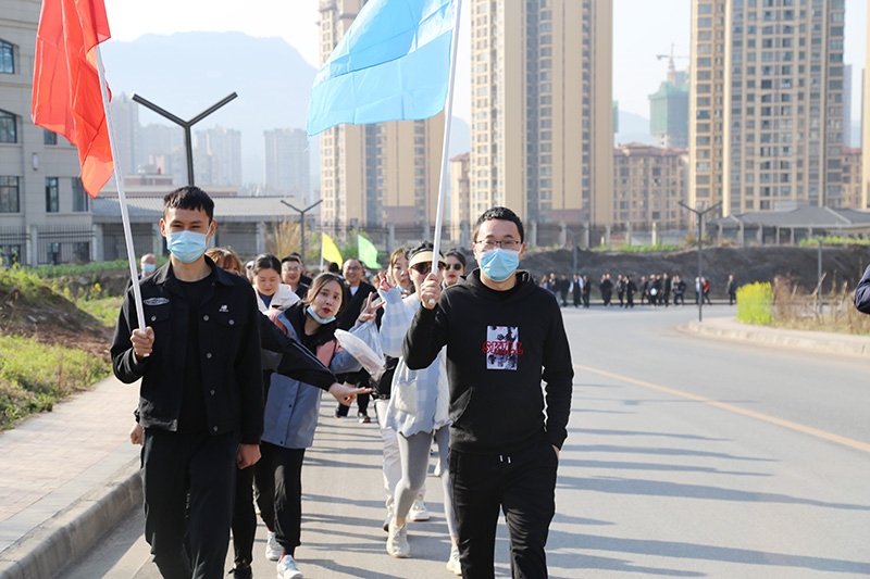 上午8點(diǎn),徒步活動(dòng)拉開帷幕,公司近150名職工組成四列長(zhǎng)隊(duì)向前進(jìn)發(fā),大家昂首闊步、你追我趕,一路歡聲笑語、氣氛熱烈。上午10點(diǎn),一到達(dá)目的地,緊張刺激的游戲活動(dòng)就開始了。所有職工被分成了紅、黃、藍(lán)、綠四個(gè)參賽隊(duì)伍,“多人抱團(tuán)”、“突出重圍”、“傳遞呼啦圈”三個(gè)游戲依次進(jìn)行。游戲比賽過程中,大家熱情高漲、積極參與、勇爭(zhēng)先鋒,歡笑聲、叫好聲此起彼伏,每個(gè)人臉上都蕩漾著春風(fēng)、洋溢著激情。