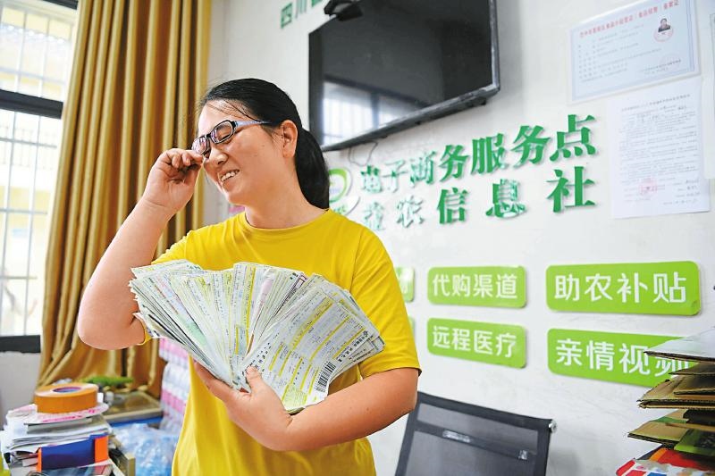 9月12日,在巴中市恩陽區(qū)窯埡村,村民黎榮華拿著一疊快遞單。這些都是今年通過電商平臺從村里賣出的土特產,成都和廣州的客人最喜歡蘆筍。9月12日航拍的巴中市恩陽區(qū)上八廟鎮(zhèn)窯埡村