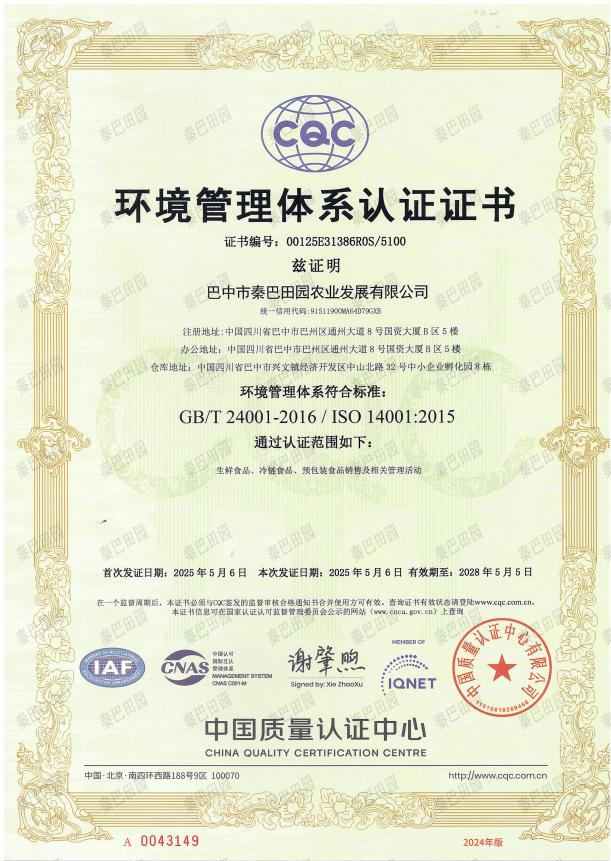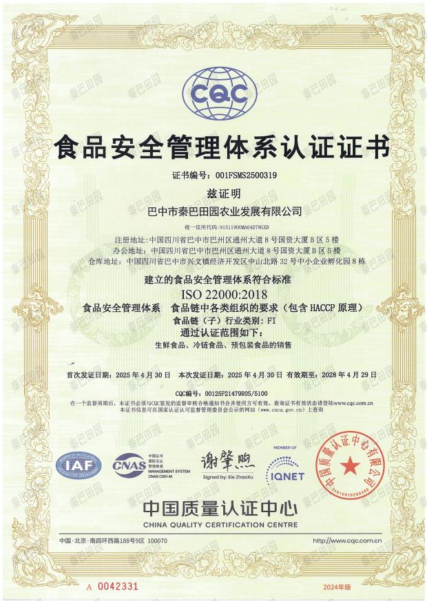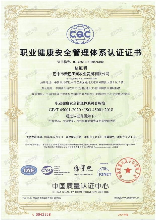 近日,巴中市秦巴田園農業(yè)發(fā)展有限公司成功通過質量管理(ISO 9001)、環(huán)境管理(ISO 14001)、職業(yè)健康安全(ISO 45001)、食品安全(ISO 22000)及供應鏈安全(ISO 28000)五大國際管理體系認證。此次認證既是對秦巴田園公司標準化運營體系的權威認可,也體現了秦巴田園公司依托國際化標準持續(xù)提升綜合服務品質,全力構建安全、綠色、健康的現代化服務體系的堅定決心。