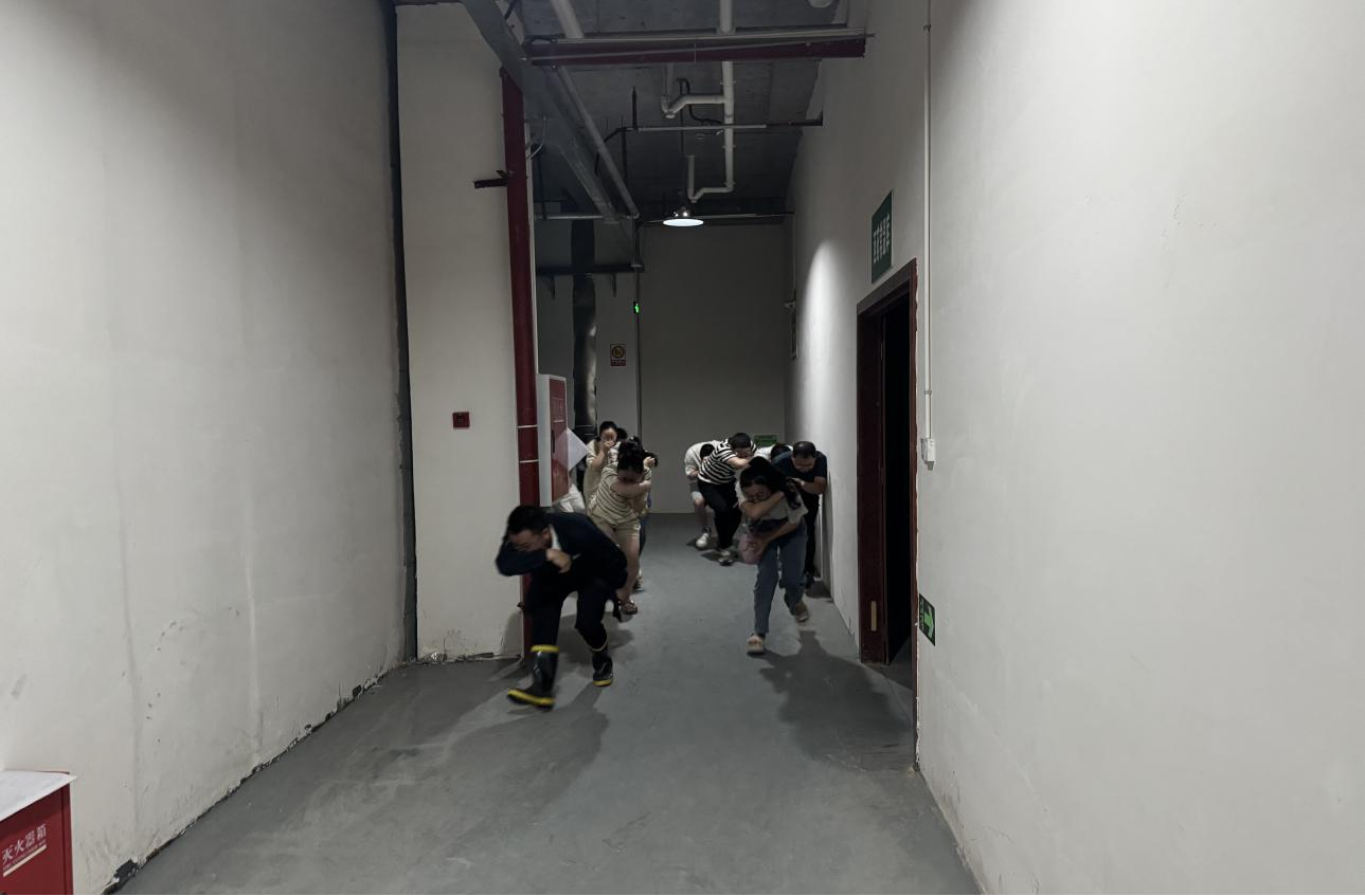 圖為:公司員工應急逃生演練,熟練掌握生命通道路線