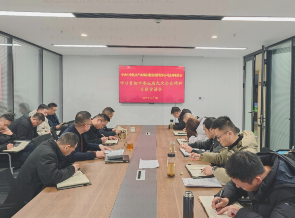 根據(jù)中共巴中市委宣傳部《關(guān)于做好學(xué)習(xí)宣傳貫徹市委五屆九次全會(huì)精神宣講工作的通知》文件要求,12月4日上午,乾興公司召開(kāi)學(xué)習(xí)貫徹市委五屆九次全會(huì)精神專題宣講會(huì)。會(huì)議由支部書(shū)
