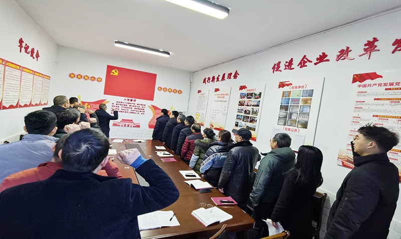 2022年2月22日,四川巴中國家糧食和物資儲備庫有限公司黨總支開展“重溫入黨誓詞暨文明創(chuàng)建齊參與,我是黨員我先行”主題黨日活動?;顒又?,全體黨員面對黨旗,高舉右手,重溫入黨誓
