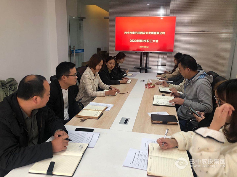 圖為2020年10月16日召開第三次職工會議2020年10月16日巴中市秦巴田園農(nóng)業(yè)發(fā)展有限公司召開了第三次職工會議,會議上為了貫徹學習農(nóng)投集團保密制度,組織全體員工學習了巴中市農(nóng)業(yè)投資集