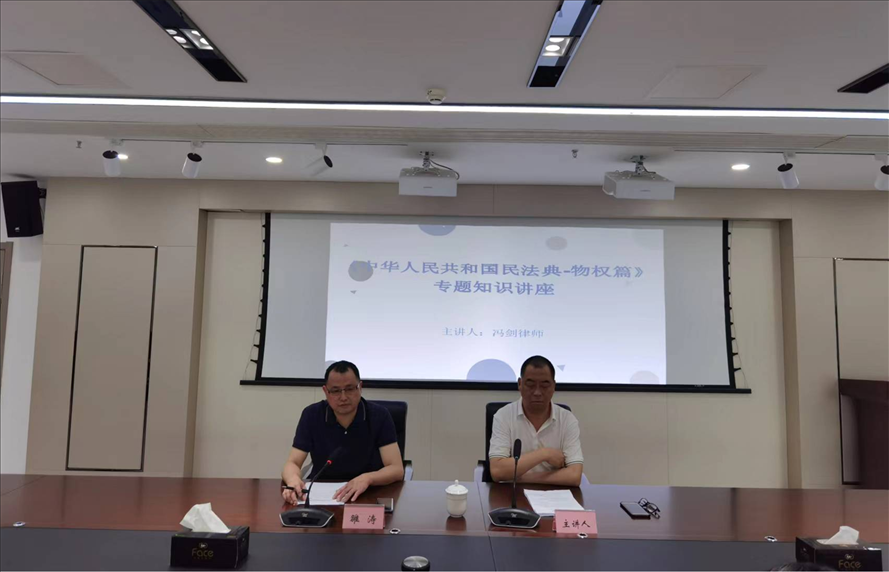 為進一步增強集團公司干部職工法律意識,提升學(xué)法遵法守法水平,2023年6月8日,市產(chǎn)業(yè)集團邀請了集團法律顧問馮劍律師,開展《民法典-物權(quán)篇》專題知識講座,集團公司本部全體職工及