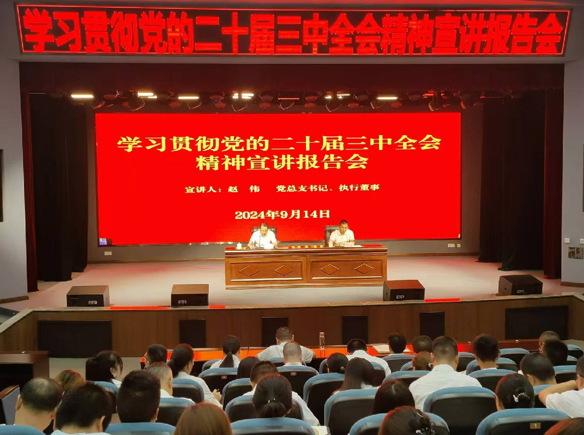 9月14日,巴中自然資源投資集團有限公司召開學(xué)習(xí)貫徹黨的二十屆三中全會精神宣講報告會,黨總支書記、執(zhí)行董事趙偉為全體員工作專題宣講。 宣講會從“深刻把握黨的二十屆三中全會的