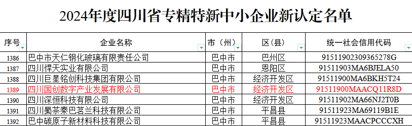 近日,四川省經(jīng)信廳公布2024年度四川省專精特新中小企業(yè)及通過復(fù)核企業(yè)名單,四川國創(chuàng)數(shù)字產(chǎn)業(yè)發(fā)展有限公司榮獲省級專精特新中小企業(yè)稱號!(“專精特新”是指具備專業(yè)化、精細化、