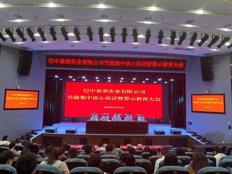 巴中秦鼎實(shí)業(yè)有限公司召開2020中秋、國(guó)慶節(jié)前集中談心談話暨警示教育大會(huì)