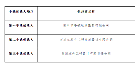 巴州區(qū)鼎山鎮(zhèn)首市村巴山肉牛標(biāo)準(zhǔn)化育肥場(chǎng)建設(shè)項(xiàng)目地質(zhì)勘察服務(wù)采購(gòu)項(xiàng)目中標(biāo)候選人公示