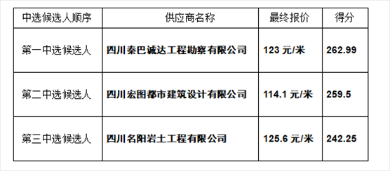 通江縣青峪豬種養(yǎng)循環(huán)現(xiàn)代生態(tài)農(nóng)業(yè)示范園建設(shè)項(xiàng)目補(bǔ)充勘察服務(wù)采購項(xiàng)目中標(biāo)候選人公示