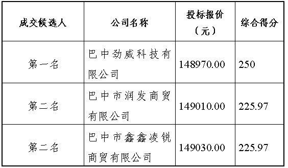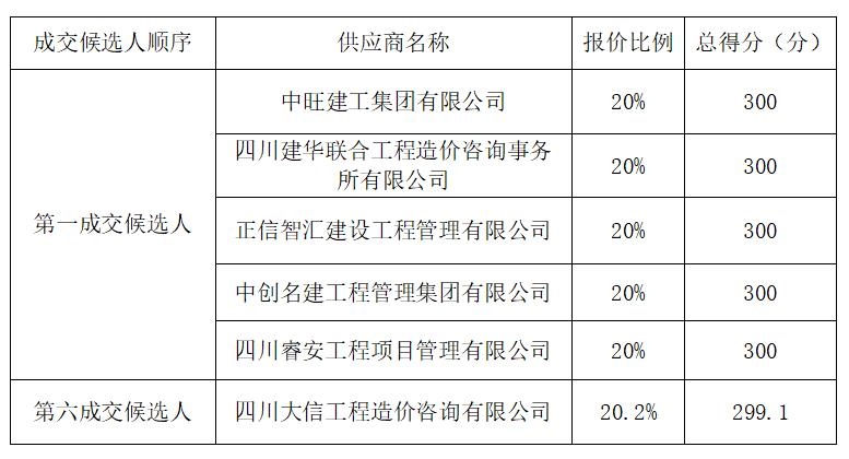 成交候選人公示項目編號:SWUEECG202100358項目名稱:巴中糧食現(xiàn)代物流園區(qū)項目(一期)建筑安裝工程全過程造價控制咨詢服務磋商日期:2022年1月4日成交候選人:成交候選人順序供應商名稱