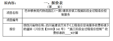 巴中糧食現(xiàn)代物流園區(qū)項目(一期)建筑安裝工程全過程造價控制咨詢服務更正公告